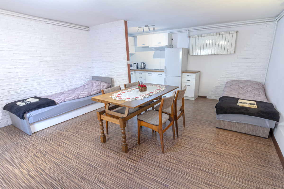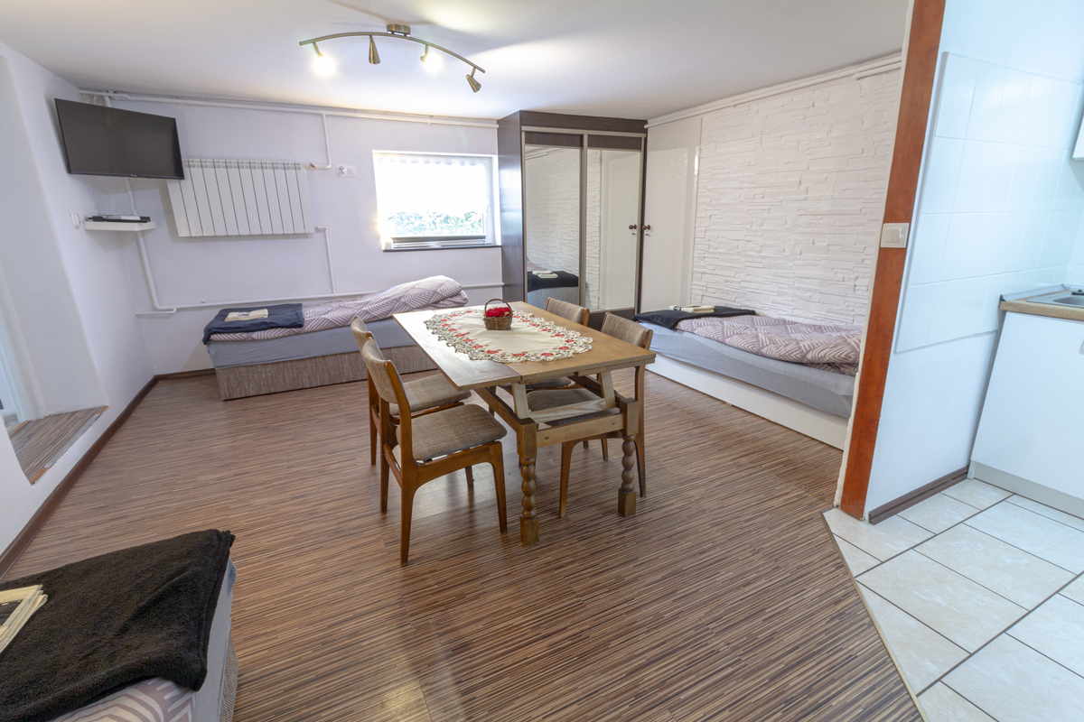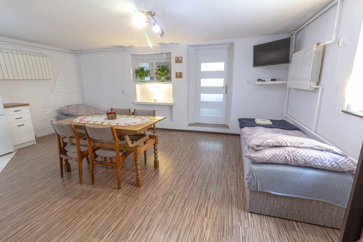 W pokoju znajdują się 3 pojedyncze łózka, duży stół , aneks kuchenny, szafa komandor i telewizor. Wejście do pokoju bezpośrednio z wiatrołapu. Powierzchnia: 24 m2